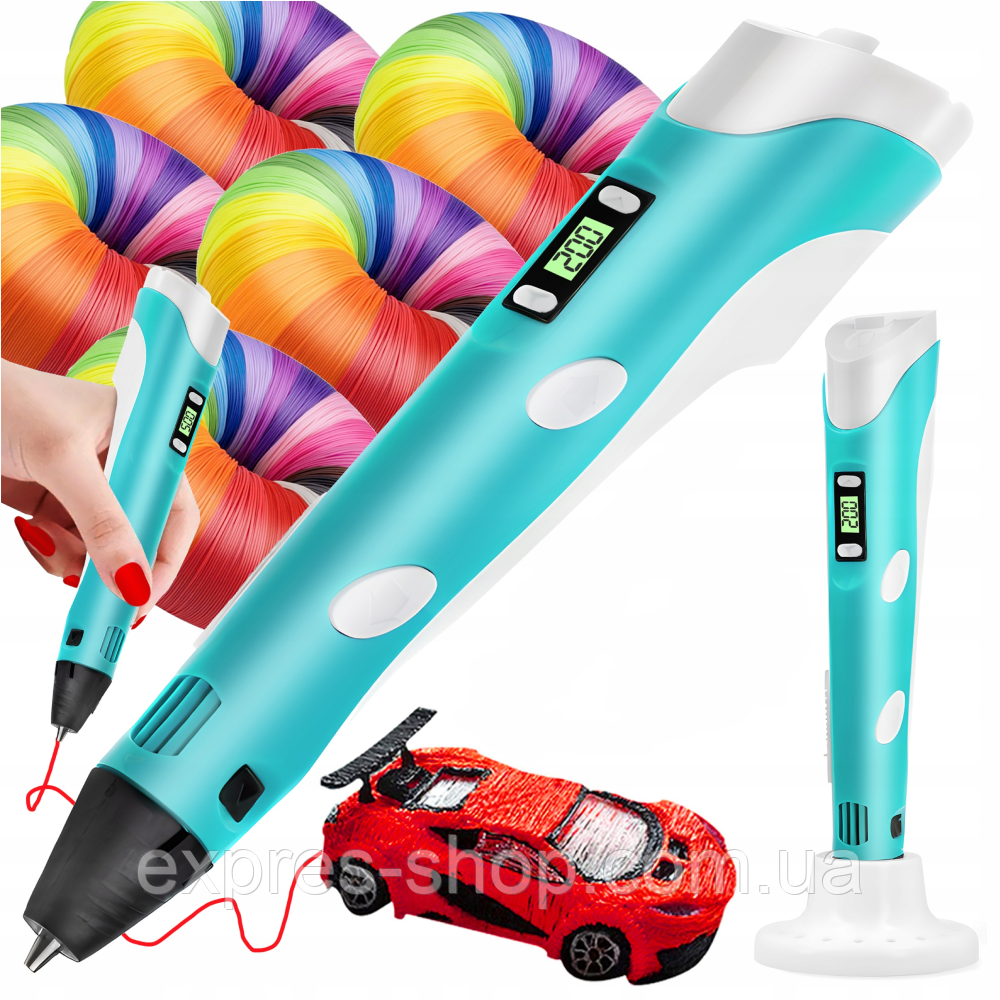 3D ручка принтер з дисплеєм та трафаретами + стрижні, DL93, Блакитна / 3д ручка для малювання / Ручка 3д дитяча