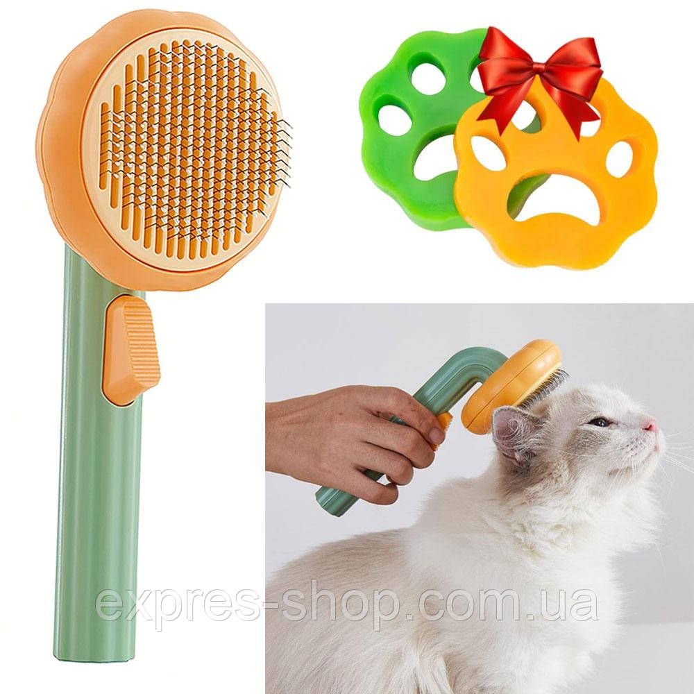 Гребінець для шерсті + Подарунок Силіконові лапки / Пуходерка з кнопкою / Щітка для вичісування шерсті