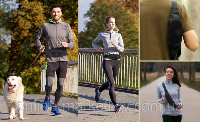 Спортивна сумка на пояс 38х12х2см, Чорна / Бананка / Сумка для бігу / Маленька сумка для спорту