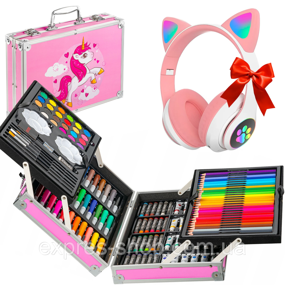Набір для малювання 145шт + Подарунок Бездротові навушники Cat VZV-23M / Дитячий набір для творчості