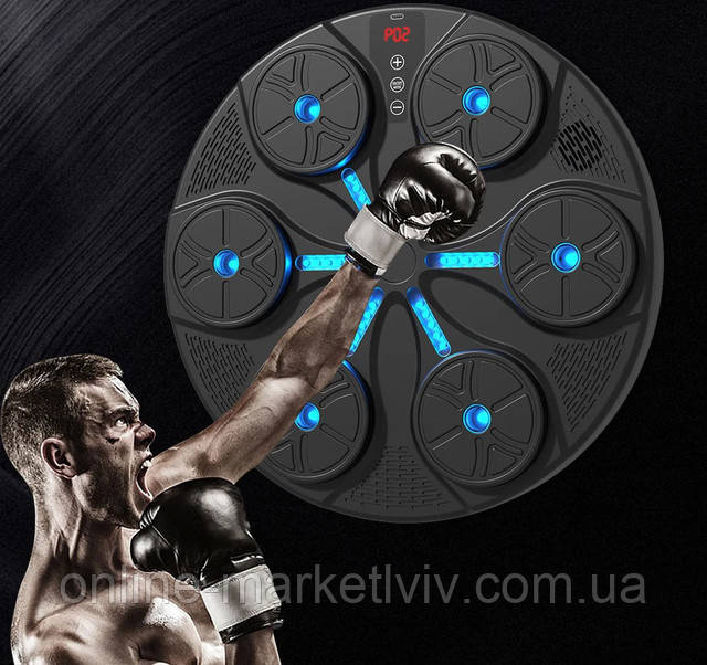 Настінний боксерський тренажер з рукавичками 35x35см / Музична боксерська мішень / Тренажер для боксу